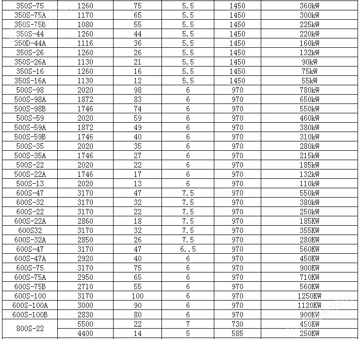 S系列單級的運(yùn)行數(shù)據(jù)  泵出口直徑 DN 80~800mm  流 量 Q ≤11600m3/h