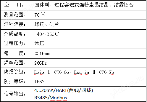 HHRD系列傳感器是26G高頻雷達式物位測量儀表,輸出4-20mA模擬信號,測量****距離可達70米。 天線被進一步優化處理,新型的快速的微處理器可以進行更高速率的信號分析處理,使得儀表可以用于:反應釜或固體料倉非常復雜的測量條件。