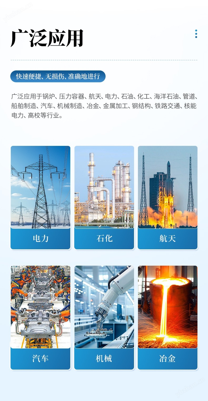 數字式超聲波探傷儀能夠快速便捷、無損傷、準確地進行工件內部多種缺陷如裂紋、焊縫、氣孔、砂眼、夾雜、折疊等的檢測、定位、評估及診斷,廣泛應用于電力、石化、鍋爐壓力容器、鋼結構、航空航天、鐵路交通、汽車、機械等領域。它是檢測行業的重要儀器。