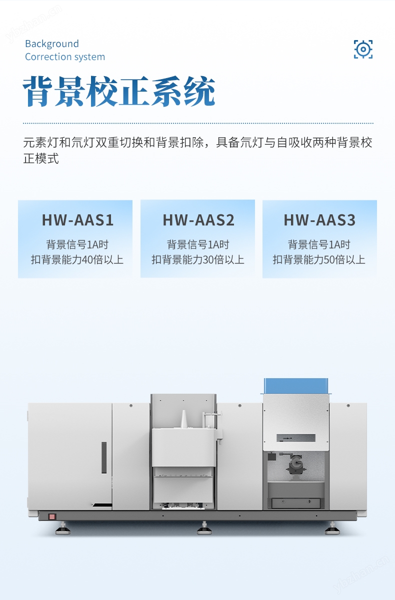 具備氘燈與自吸收兩種背景校正模式,背景信號1A時,扣背景能力40倍以上。
