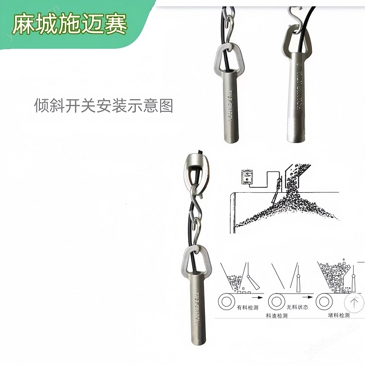 傾斜料位開關TILT SWITCH防堵料開關用于料流、堵塞及料位檢測可用于大流量料流、料位檢測;裝配不銹鋼浮球后專用于糧食料流、料位檢測,液體料流料位檢測。防爆型可用于氣體及粉塵防爆區域。當開關部分傾斜約20度時,料流內部的開關為就會動作并輸出接點信號。傾斜開關耐磨性較強而且牢固,廣泛用于檢測固體(如粉體、粒體、塊體)料倉或中轉料槽的上限料位。是一種廣泛應用于工業自動化、家用電器、安防設備等領域的傳感器裝置。在工業領域,特別是散料處理系統中非常重要的安全保護裝置。是散料處理系統中的“安全衛士”。它通過巧妙的機械-電氣轉換,將“堵塞”這一物理現象轉化為清晰的電信號,是實現自動化流程、防止設備損壞、保障量產安全常用的關鍵部件。正確選型和安裝維護,能極大提高系統的穩定性和可靠性。其核心功能是通過檢測物體的傾斜角度變化來實現電路的導通或斷開,從而達到防堵、報警或控制的目的。這種開關因其結構簡單、可靠性高、 在市場上備受青睞。