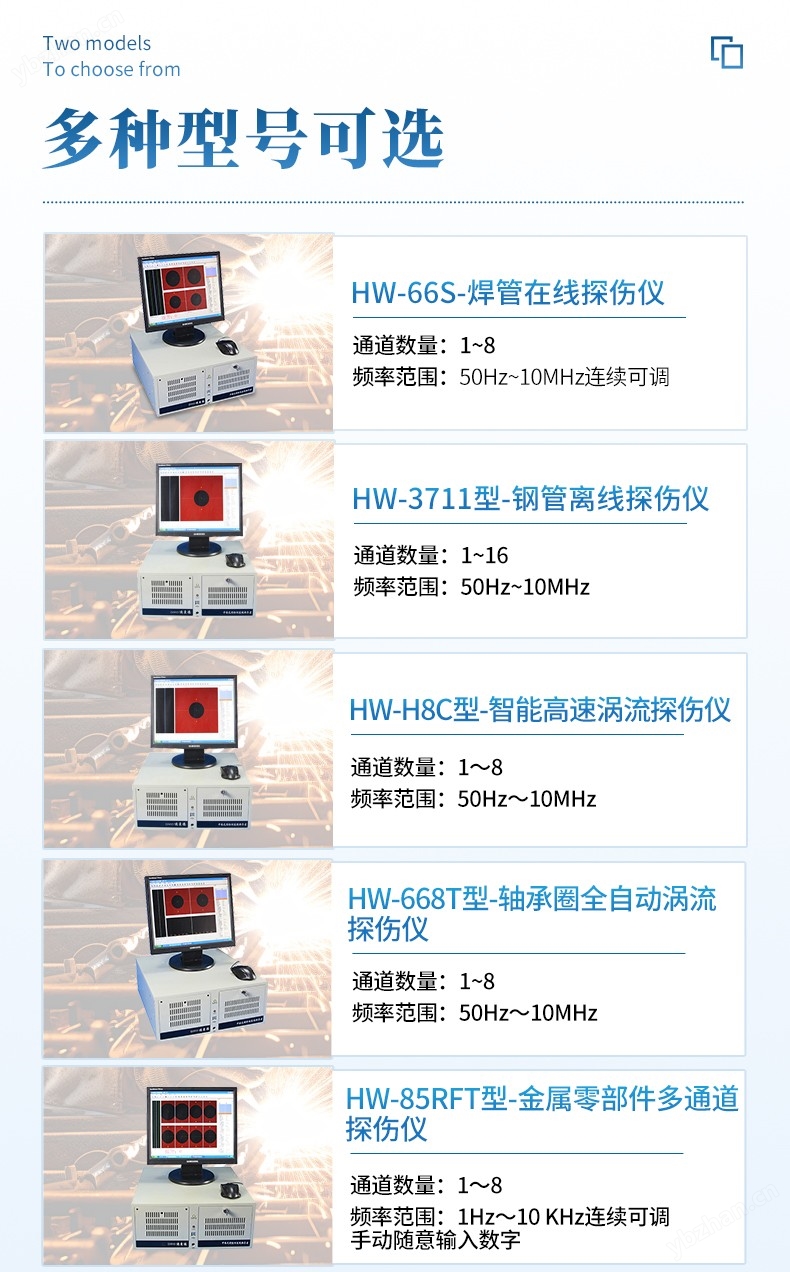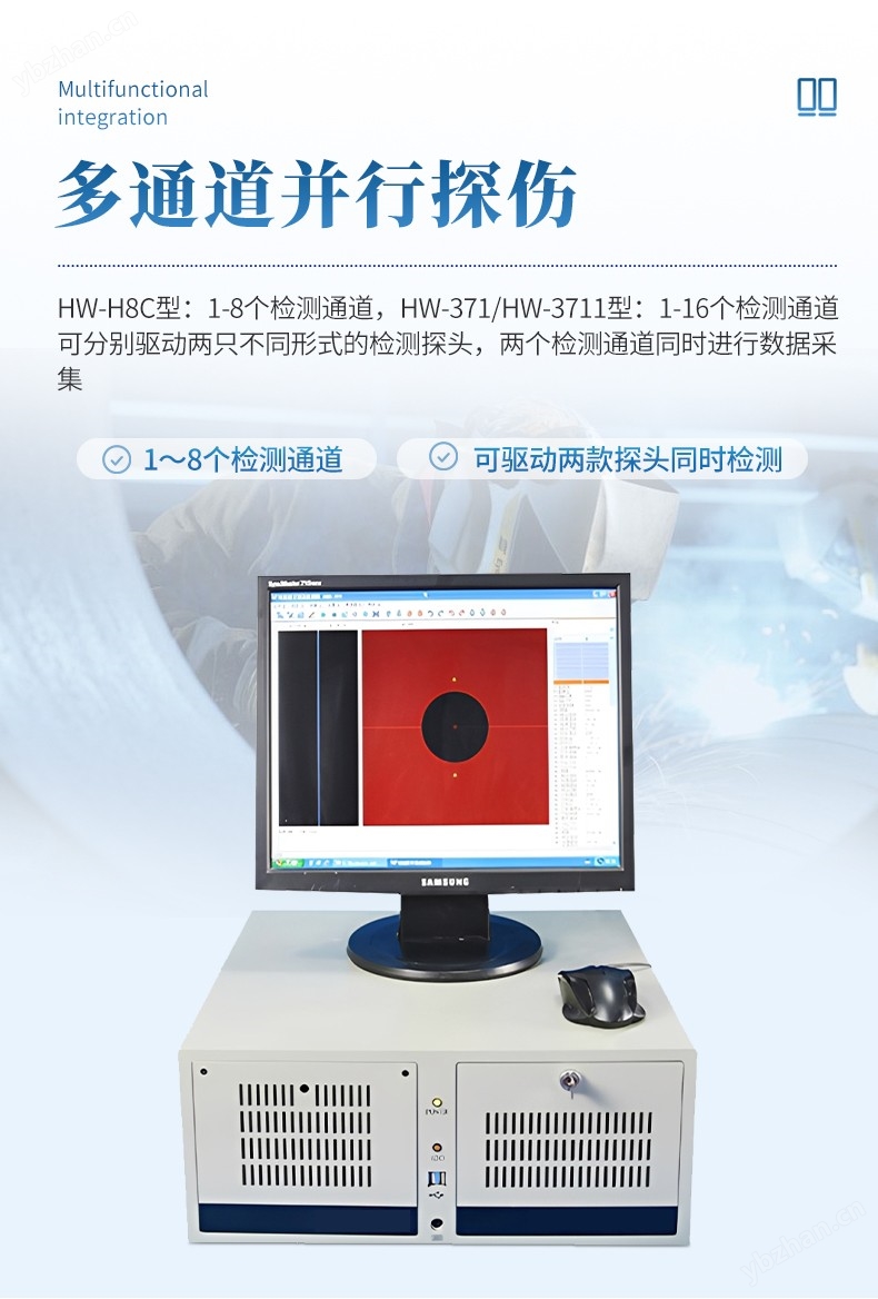 具有相對獨立的檢測通道,可同時驅動兩款不同形式的檢測探頭(由絕對和差動線圈構成的組合式探頭等),兩個檢測通道同時進行數據采集,用于檢出金屬管、棒生產中出現的縱向和橫向裂紋缺陷。用于焊管在線、離線檢測時,儀器對金屬管、棒、線材的裂紋、暗縫、氣孔、夾雜和開口裂紋等缺陷具有很高的檢測靈敏度。對生產過程中,因焊機故障而造成產品的緩變傷、長道傷均能可靠檢出。