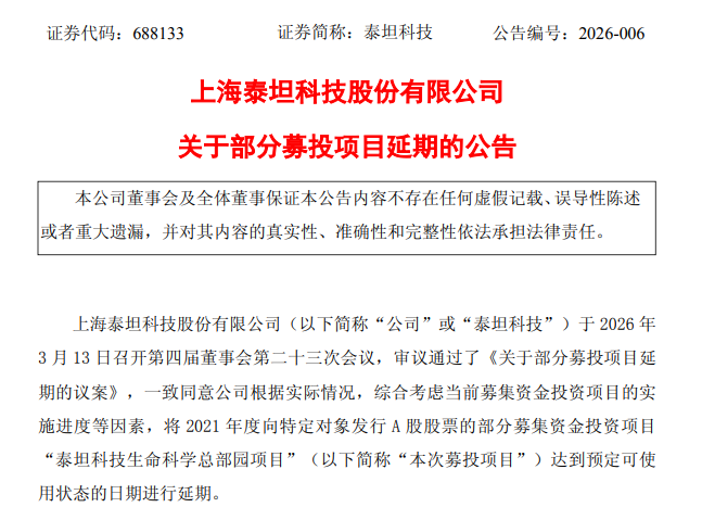 3泰坦科技業(yè)績由盈轉(zhuǎn)虧 核心募投項(xiàng)目二度延期至2027年3月