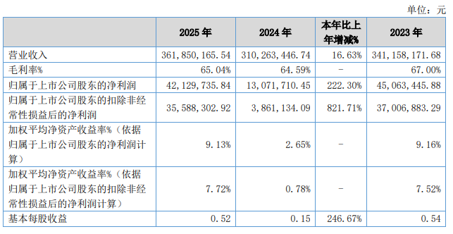 儀表網(wǎng) 行業(yè)財報】3月16日,海能技術(shù)(920476)披露2025年年度報告。2025年公司實現(xiàn)營業(yè)總收入3.62億元,同比增長16.63%;歸母凈利潤4212.97萬元,同比增長222.30%;扣非凈利潤3558.83萬元,同比增長821.71%;基本每股收益為0.52元。公司2025年度分配預(yù)案為:擬向全體股東每10股派現(xiàn)1元(含稅)。
