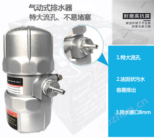 利用壓縮空氣在AKP-04S自動排器中的壓力差來控制閥片的開關從而達到自動排水的效果