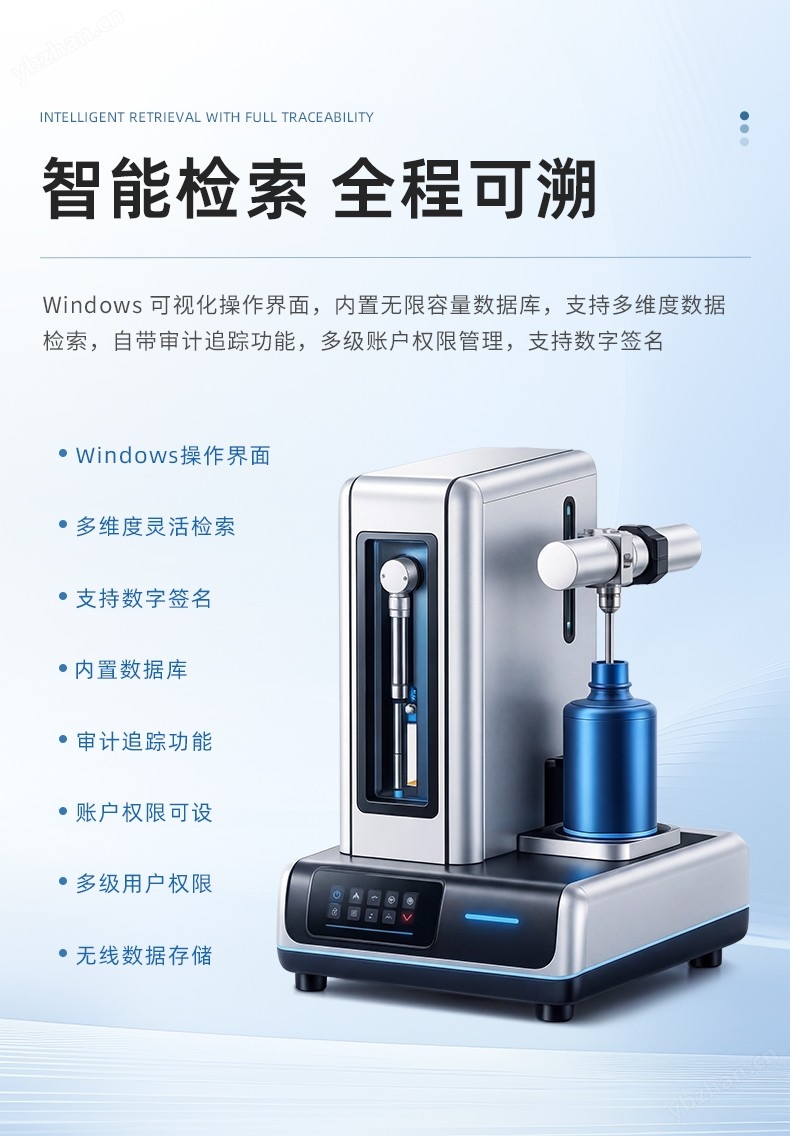 l Windows操作界面,內(nèi)置數(shù)據(jù)庫(kù),無(wú)限數(shù)據(jù)存儲(chǔ),可使用測(cè)試標(biāo)準(zhǔn)、樣品名稱、樣品批號(hào)、測(cè)試人員、測(cè)試時(shí)間等多種方式進(jìn)行檢索查詢