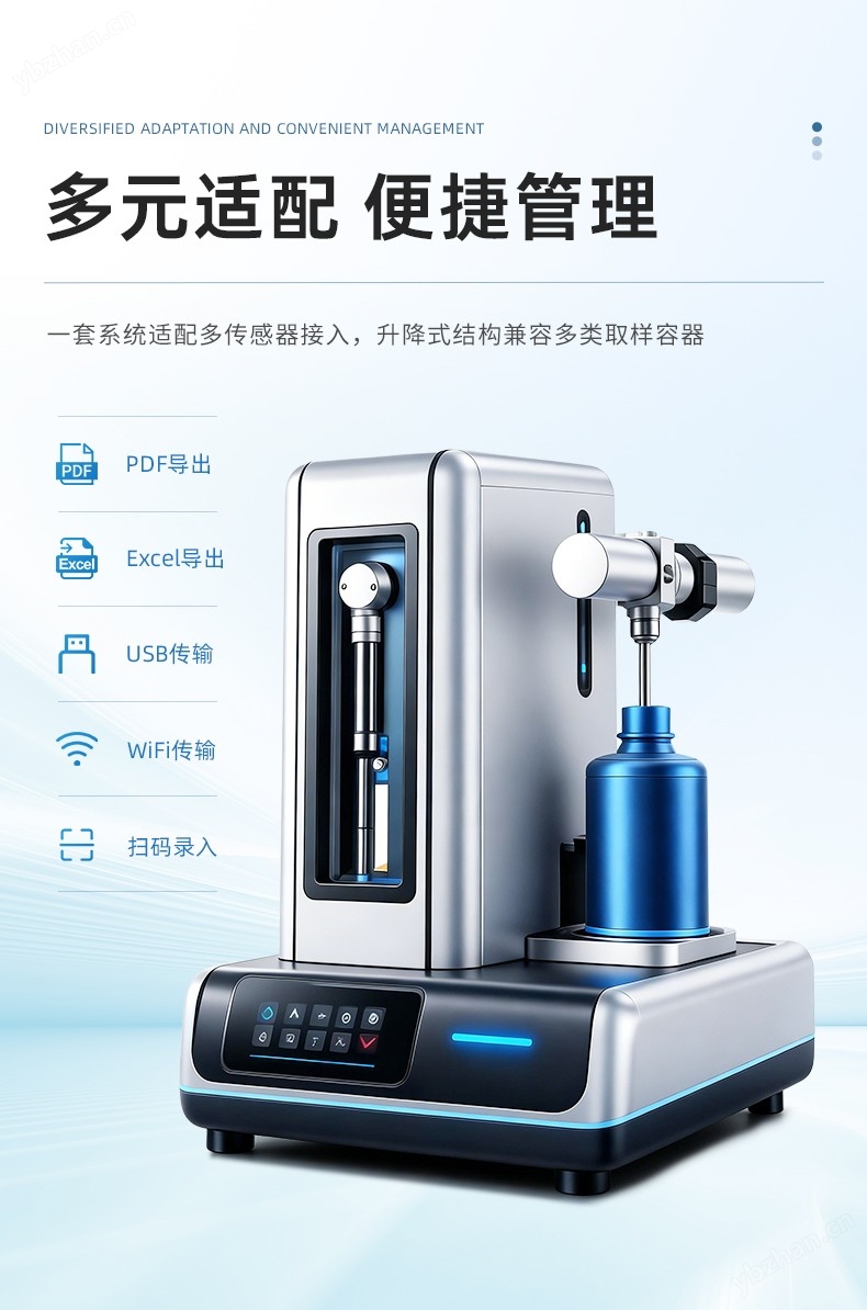 l 升降式傳感器設(shè)計(jì),適用多種取樣容器,滿足不同行業(yè)的檢測(cè)要求
