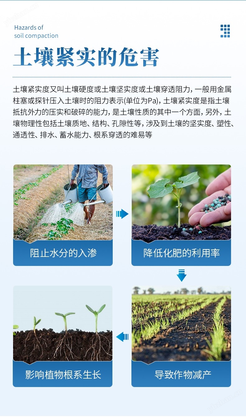 土壤緊實度是評價土壤耕性的重要物理指標,反映土壤抵抗外力壓實和破碎的能力,直接影響水分入滲、肥料利用效率及作物根系生長。本儀器通過金屬探頭壓入土壤時的阻力來測定緊實度,為農業、科研、工程等領域提供量化依據。