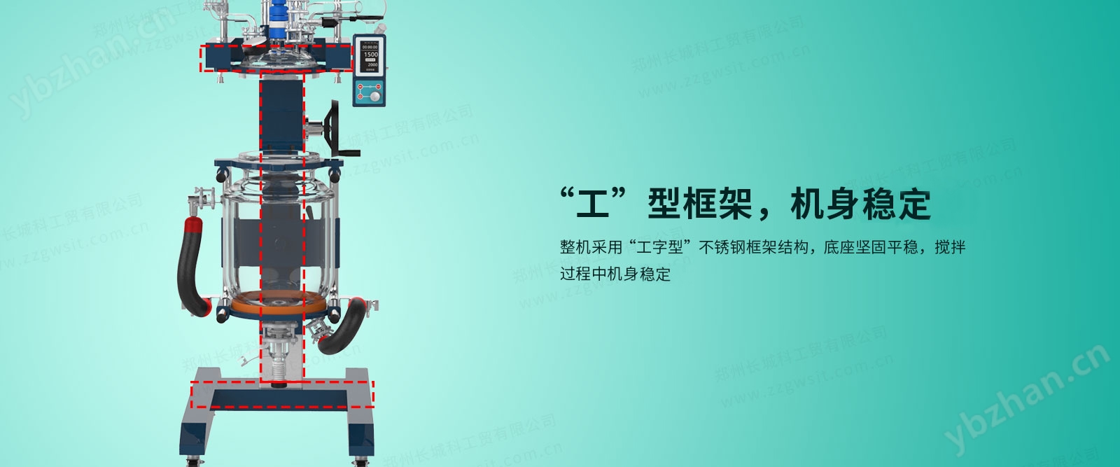 當前位置:鄭州長城科工貿有限公司>>玻璃反應釜>>升降玻璃反應釜>> 升降型夾套玻璃反應釜