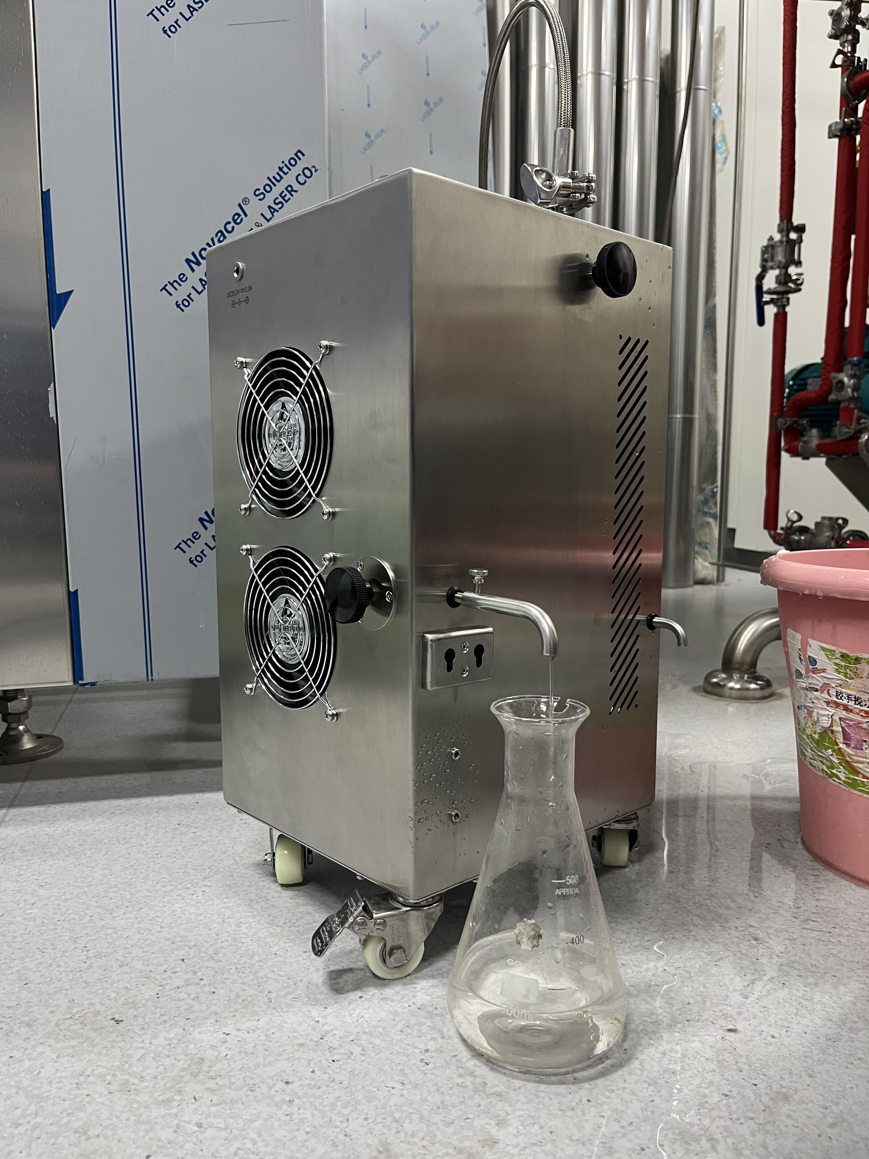 本設備主要用于純蒸汽的冷凝取樣,通過空氣換熱將不銹鋼導管中的蒸汽進行降溫,使其凝結成水,通過檢驗冷凝水的水質成分,確認純蒸汽是否符合檢測標準。本產品適用于生物、制藥等領域純蒸汽滅菌系統的蒸汽取樣。