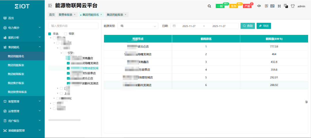 支持對所有門店進行用電排名;