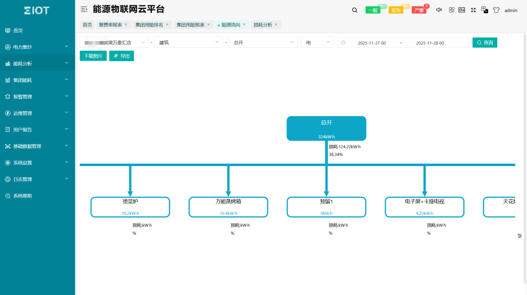 生成門店能源桑基圖,直觀展示用電流量及損耗;