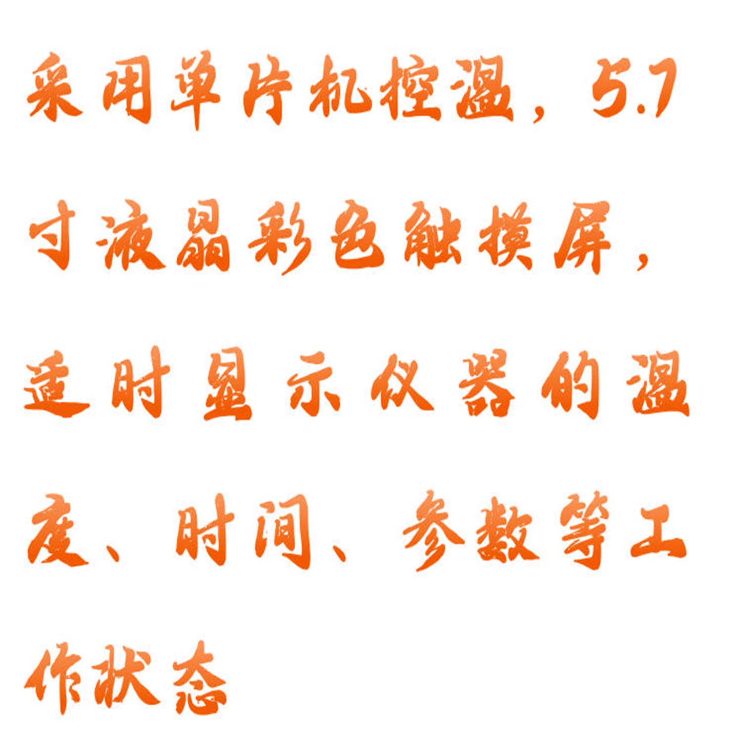 1.采用單片機(jī)控溫,5.7寸液晶彩色觸摸屏,適時(shí)顯示儀器的溫度、時(shí)間、參數(shù)等工作狀態(tài);