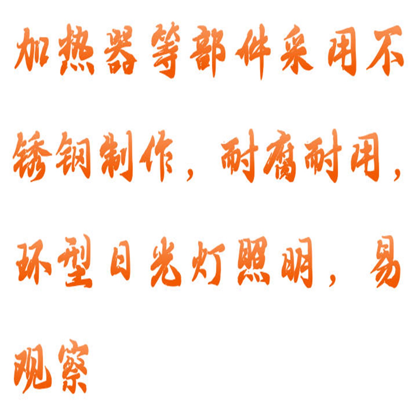 5.加熱器等部件采用不銹鋼制作,耐腐耐用,環(huán)型日光燈照明,易觀察;