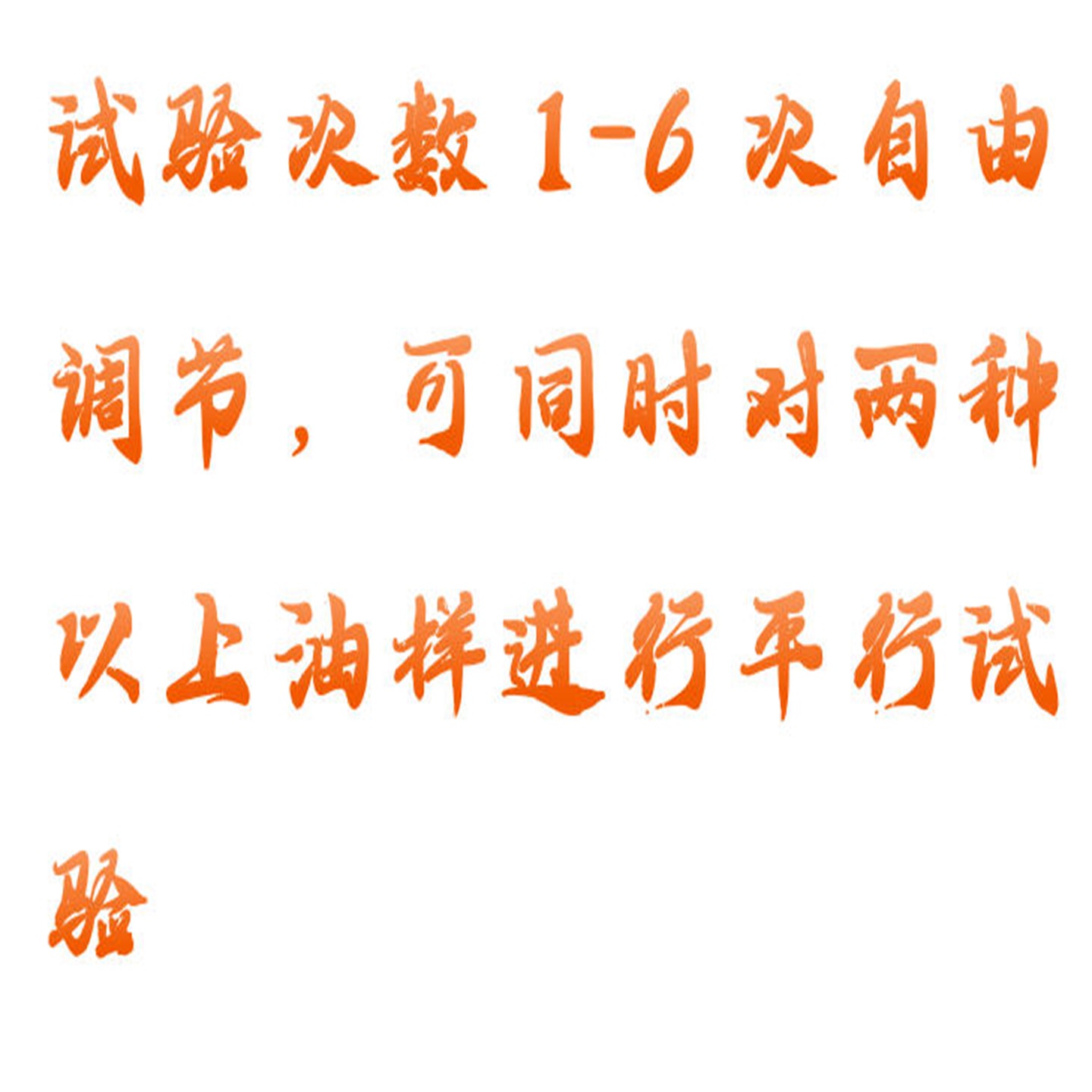 6.試驗(yàn)次數(shù)1-6次自由調(diào)節(jié),可同時(shí)對(duì)兩種以上油樣進(jìn)行平行試驗(yàn);